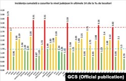 Județul Timiș intră în scenariul roșu, după ce a fost depășit pragul de trei cazuri la mia de locuitori. În scenariul roșu se mai află deja București, Alba, Cluj, Harghita și Sălaj.