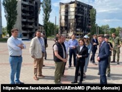 Vizita a început la Borodianka, Bucea și Irpin - localități din apropiere de Kiev, care au devenit simboluri ale crimelor de război de care Rusia e acuzată că le-ar fi comis în Ucraina. Maia Sandu s-a declarat „fără cuvinte, în fața violenței și distrugerilor” pe care le-a văzut în aceste localități.