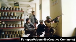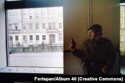 Fotografia de mai sus, care înfățișează un soldat român în timpul unui schimb de focuri pe străzile Timișoarei în decembrie 1989, este una dintre mai multe imagini anonime postate recent online de arhiva fotografică maghiară Fortepan.