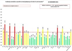 La data de 27 noiembrie 2021, ora 10.00, în intervalul de 24 de ore, au fost înregistrate 1.727 cazuri de persoane pozitive cu SARS-COV-2. De asemenea, au fost raportate 180 de decese dintre care 19 anterioare.