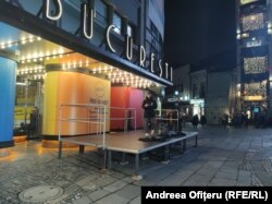 Și liderii Alianței pentru Unirea Românilor (AUR) așteaptă momentul în care se vor închide urnele. Doi membri ai partidului - Marius Lulea și Adrian Acsinia - sunt în fața Magazinului București, sediul de campanie al AUR,
