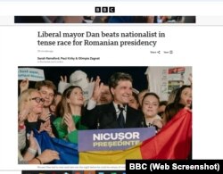 Subiectul alegerilor este tratat pe larg și de Serviciul central al Europei Libere, într-o analiză semnată de Ray Furlong, cu titlul „Victoria surprinzătoare a primarului Bucureștiului, Dan, la președinție, aduce o ușurare pentru UE și NATO.”