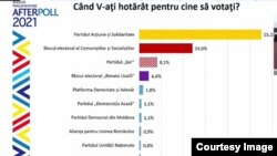 Potrivit acestor date, în parlament ar intra trei partide, dar PAS poate forma singur guvernul chiar și în situația în care Blocul Comuniștilor și Socialiștilor și Șor s-ar alia.
