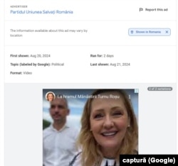 O parte din reclamele promovate de AUR pe Google au fost scoase pentru că încălcau politicile firmei.