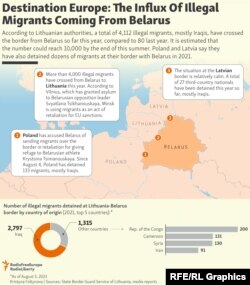 Societatea civilă și media independentă au fost printre cele mai importante ținte ale regimului, mai ales în ultimele luni. Vecinii lituanieni l-au acuzat pe Lukașenko de război hibrid pentru că trmite mii de migranți peste graniță în mod ilegal pentru a pedepsi Lituania și Uniunea Europeană pentru sprijinul arătat față de Țihanovskaia.