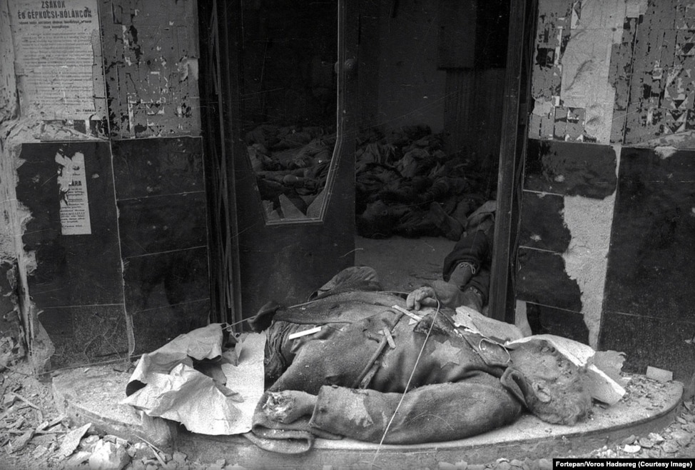 Fotograful de război maghiar Robert Capa a ajuns la Budapesta după asediu. Își descrie orașul natal ca „pe o femeie frumoasă cu dinții scoși”.