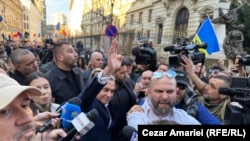Călin Georgescu a ajuns vineri la Biroul Electoral Central (BEC) cu puțin înainte de ora 16:00, alături de soția lui, Cristela. El și-a făcut loc printre susținători cu ajutorul bodyguarzilor.
