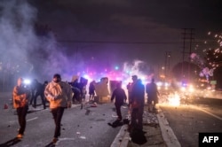 Poliția din Los Angeles a postat pe X că „mai multe persoane au fost reținute pentru că nu s-au dispersat după ce au fost emise mai multe avertismente”.