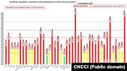 Sâmbătă, pe lângă București, depășiseră rata de 6 cazuri la mia de locuitori județele Ilfov (8,67) și Timiș (7,30). Rata incidenței cazurilor este în creștere în toate județele.