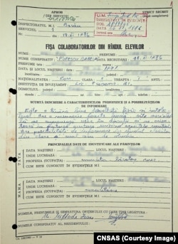 De asemenea, de multe ori, colaboratorii din rândul elevilor nu au avut un dosar personal propriu-zis, ci doar o fişă a colaboratorului şi nu au fost cuprinşi în bazele de lucru ale Securităţii.