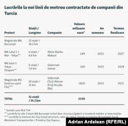 În același timp, principalele proiecte de noi linii de metrou - două loturi ale Magistralei M6 din București - și metroul din Cluj au fost contractate de asemenea de ascocieri formate din sau conduse de companii turcești.