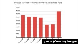 În ultimele 24 de ore au fost înregistrate 40.018 cazuri noi de Covid, cu 19.887 mai multe decât în ziua anterioară. Au fost efectuate 36.146 de teste RT-PCR și 86.494 de teste rapide antigenice, rata de infectare fiind de 32,6%.