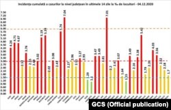 În intervalul 03.12.2020 (10:00) – 04.12.2020 (10:00) au fost raportate 176 de decese (109 bărbați și 67 femei), ale unor pacienți infectați cu noul coronavirus, internați în spitalele Alba, Argeș, Arad, Bacău, Bihor, Botoșani, Brăila, Brașov, Buzău, Călărași, Caraș-Severin, Cluj, Constanța, Covasna, Dâmbovița, Dolj, Galați, Gorj, Harghita, Hunedoara, Ialomița, Iași, Maramureș, Mureș, Prahova, Satu Mare, Sibiu, Suceava, Teleorman, Timiș, Vaslui, Vrancea, Ilfov și Municipiul București.