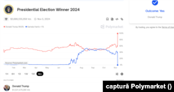 Deși multe sondaje de opinie preelectorale din SUA estimau că învingătoare în alegerile din noiembrie 2024 va fi candidata democraților, Kamala Harris – în timp ce altele arătau egalitate între cei doi candidați – pariurile de pe Polymarket au spus altceva.
