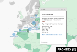 Datele oficiale: Agenția Europeană pentru Poliția de Frontieră și Garda de Coastă – Frontex precizează că din ianuarie până în noiembrie 2022 prin Marea Neagră au intrat 196 de migranți din Afganistan (69), Somalia (48), Irak (44), Siria (20), Eritreea (6).