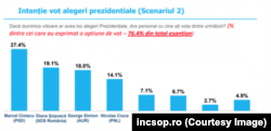 - Diana Șoșoacă- 14,4% (crestere de 4,4%),