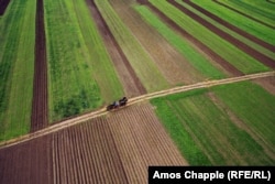 O căruță trasă de cai, pe un câmp din apropiere de Miercurea Ciuc. Aproape o treime dintre români lucrează azi în agricultură, dar industria bazată pe tehnologie este responsabilă pentru creșterea economică susținută.
