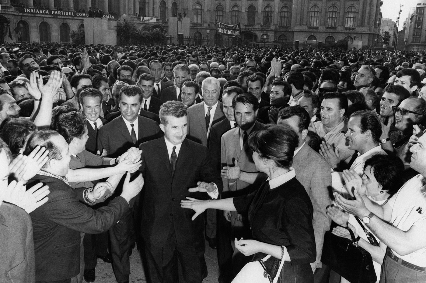 Nicolae Ceaușescu în mijlocul unei mulțumi care îl aplaudă în centrul Bucureștiului în 1970.Interfoto/Alamy