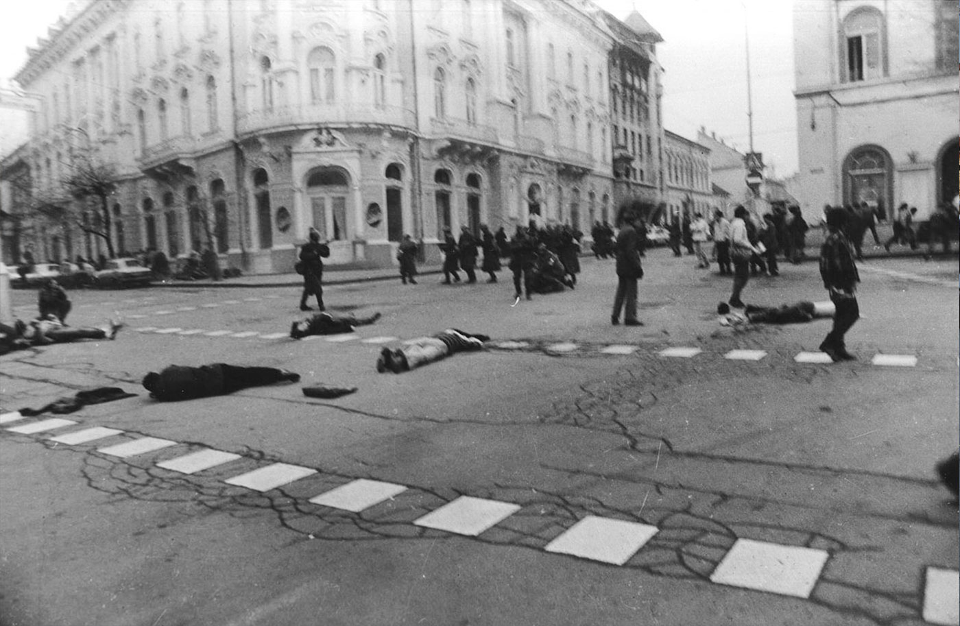 Morți și răniți pe străzile din Cluj după ce mai mulți oameni au protestat împotriva omorurilor din Timișoara și au fost împușcați de soldați. Răzvan Rotta Răzvan Rotta