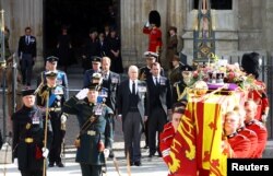 Sicriul Reginei Elisabeta în procesiune funerară pe străzile Londrei.