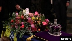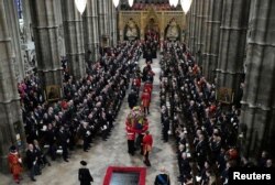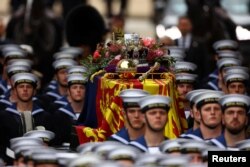 Sicriul Reginei Elisabeta a fost purtat până la Westminster Abbey pe un afet de tun tras cu frânghii de membrii Forțelor Navale ale Marii Britanii.