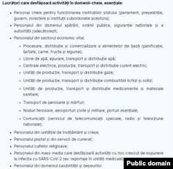 Pentru TVR și RRA, adică radio-ul și televiziunea publice, guvernul a făcut o mențiune expresă în virtutea faptului că sunt instituții publice. Cele două servicii de presă care cumulează peste 5 mii de angajați sunt incluse în categoria instituțiilor vitale ale statului român: