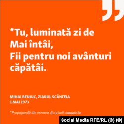 În anii 80, avântul tovărășesc s-a mutat de pe clasa muncitoare spre „cel mai iubit fiu al partidului”, iar prețul poeziilor de 1 mai a scăzut la 3-400 de lei, adică cel mult un sfert de salariu mediu comunist.