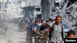 Familiile au fugit din estul Khan Yunis cu vehicule și pe jos, cu bunurile strânse pe cărucioare cu măgari și pe ricșe, îpe drumurile superaglomerate.