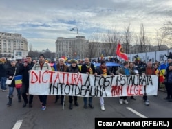 „CCR condamnat pentru votul anulat”, este una dintre scandările protestatarilor.