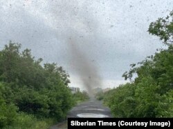 Deși imaginile fac furori pe Internet, locuitorii din peninsula rusească spun că evenimentul este o „problemă” anuală care întunecă cerul în fiecare vară.