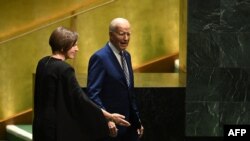 El a ajuns la AGNU întâmpinat de reporterii care-i strigau întrebări de pe margine, flancat de agenți de securitate și urmat de secretarul de presă al Casei Albe, Karine Jeanne-Pierre, și de trimisul special pentru climă, John Kerry.