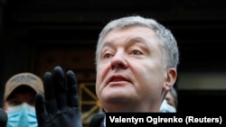 Înainte de a intra miercuri în clădirea DBR, Poroșenko a vorbit cu jurnaliștii și l-a criticat pe președintele Volodymyr Zelenskiy pentru ceea ce el a numit „persecutarea opoziției”.