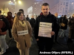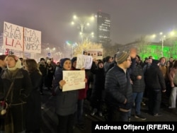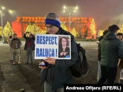 Manifestanții scandează: „Jos Predoiu", "Jos Voineag", „Lia, afară, coruptă ordinară", „Infractorilor, repet: România-i stat de drept", „Afară, afară cu mafia din țară".