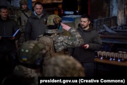Președintele ucrainean, Volodimir Zelenski, a vizitat orașul Bakhmut din prima linie pentru a se întâlni cu reprezentanții militari și a înmâna premii soldaților.
