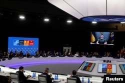 Președintele ucrainean a avertizat NATO că ambițiile Moscovei nu s-au oprit la țara sa în timpul unui mesaj virtual transmis summitului.
