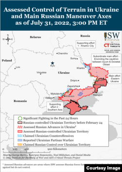 Institutul pentru Studierea Războiului a precizat că forțele ruse reiau atacurile la sol la nord-vest de Sloviansk și la sud-vest de Izium.