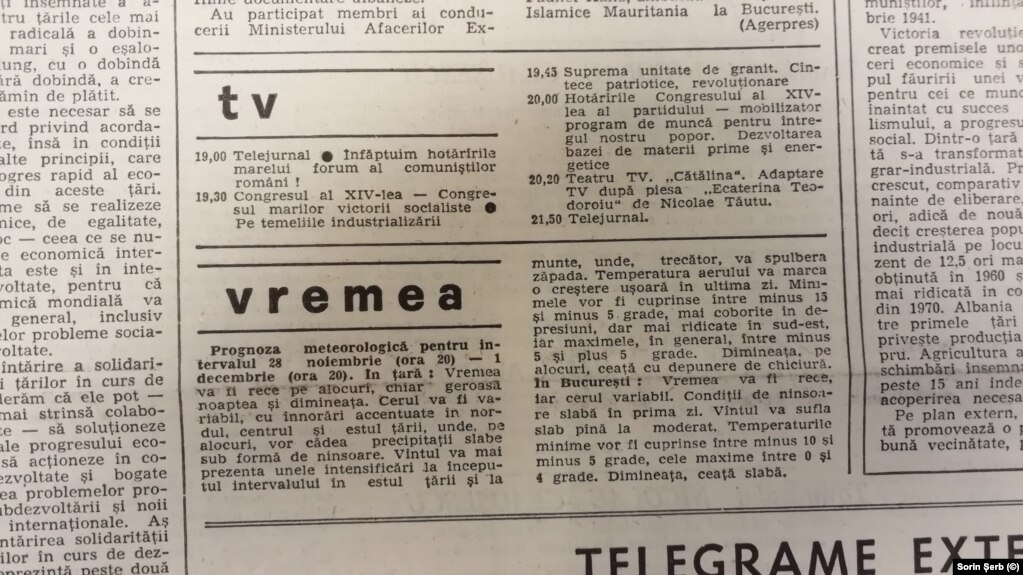 „Congresul al XIV-lea al PCR, Congresul marilor victorii socialiste: Cu legitimă mândrie patriotică pentru mărețele împliniri ale poporului, dând expresie aprobării depline față de tezele și orientările cuprinse în Raportul prezentat de tovarășul Nicolae Ceaușescu, marele forum al comuniștilor își continuă spiritul înaltei răspunderi pentru prezentul și viitorul României socialiste,” titrează Scânteia. Mai multe aici