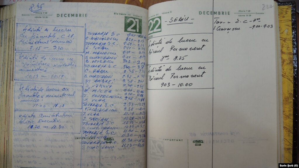 Era duminică dar Ceaușescu lucra cu motoarele încinse la roșu. Conform agendei de cancelarie, toată ziua aceea avusese audiențe. Curticeanu îi călcase pragul patru ori, Dăscălescu și Dincă de câte două ori. Tovarășa Elena fusese cea mai insistentă, călcând pragul cabinetului 1 de șapte ori. Mai multe aici