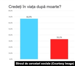 În proporție de 70,5% repondenții studiului spun că cred în Înviere, dar doar 33,3% spun că vor merge cu certitudine la biserică la slujba de Înviere, alți 37,1 nefiind hotărâți, în timp ce 29,5% spun că nu vor merge în mod cert.