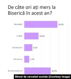 Cu toate acestea, în ultimul an de pandemie 38,2 % spun că nu au fost niciodată la biserică, în timp ce alți 30% afirmă că au fost de mai multe ori.