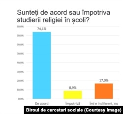 Din cei 74% care răspund că sunt de acord cu studierea religiei în școli, cei mai mulți, peste 80%, sunt persoane trecute de 70 de ani, cu studii elementare (79,5%), femei (79,7%), șomeri, fără ocupație sau bugetari (81,9%). În schimb, tinerii între 18 și 29 achiesează mai puțin la această idee (56,8%), elevi și studenți (45,7%), iar ca opțiuni politice reticenți sunt cei care simpatizează cu USR PLUS (46,3%).
