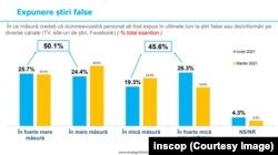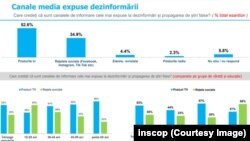 În concordanță cu această analiză sunt și datele care arată că 52,6% consideră că posturile TV sunt cele mai expuse la dezinformări, 34,9% că situația se datorează rețelelor sociale și 4,4% ziarelor și revistelor.