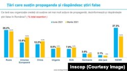 - Rusia este principala țara care susține acțiuni de propagandă, dezinformează și răspândește știri false în România, consideră 25,2% dintre repondenți.