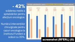 • între -35% și -79% pentru Institutul Clinic Fundeni, care înregistrează reduceri semnificative inclusiv în numărul intervențiilor chirurgicale pentru pacienții oncologici,