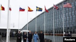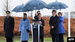 Steagul Suediei a fost arborat pentru a se alătura steagurilor celorlalți 31 de Aliați, în timp ce s-a cântat imnul național suedez și imnul NATO.