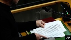 Președintele ucrainean a spus că simpla respectare a Cartei ONU ar garanta dreptul țării sale la integritate teritorială și suveranitate și că ocupanții ruși trebuie să se retragă și să fie „trași la răspundere cei responsabili pentru crimele de război”.